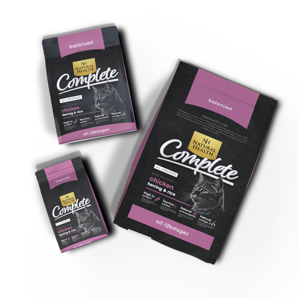 Deze Complete lijn is een uitgebalanceerd recept met hoogwaardige ingrediënten zoals vlees, vis, zuivel, groenten, fruit, voedzame granen en gezonde vetten. Zorgvuldig geselecteerd om het algehele welzijn van uw kat te ondersteunen. Gemaakt vanuit een holistische filosofie en met een oprechte waardering voor natuurlijke smaken. Elke hap is even gezond als lekker.