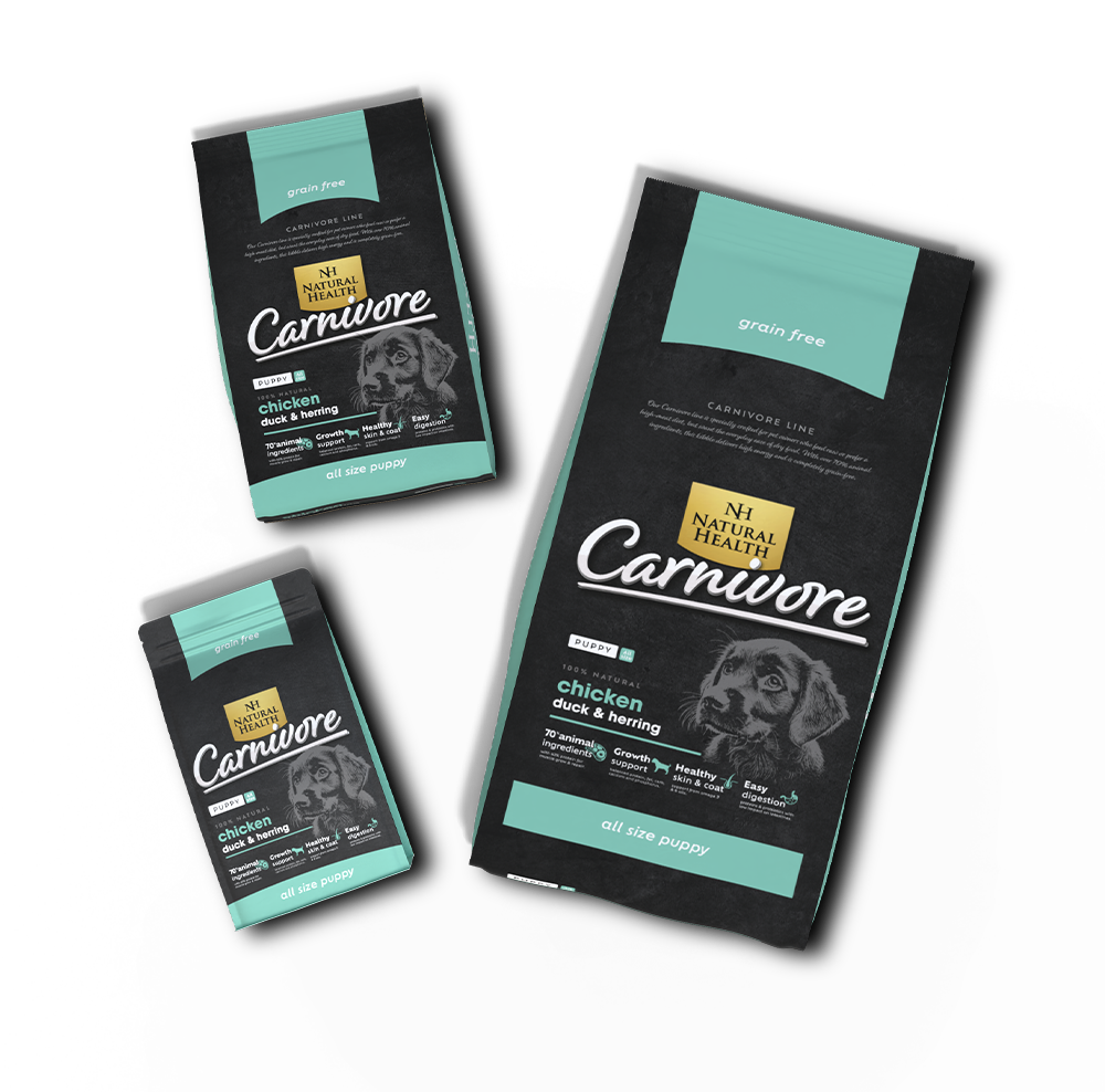 Onze Carnivore-lijn is speciaal ontwikkeld voor huisdiereigenaren die rauw voer geven of de voorkeur geven aan een dieet met veel vlees, maar toch het gemak van droogvoer willen. Met meer dan 70% dierlijke ingrediënten levert deze brok veel energie en is volledig graanvrij. Hoog vleesgehalte met 42% eiwitten. Eiwitten, vetten, koolhydraten, calcium en fosfor ondersteunen de groei. Omega 3 en 6 oliën dragen bij aan een gezonde huid en vacht. Eiwitten en probiotica die helpen bij een makkelijke vertering.
